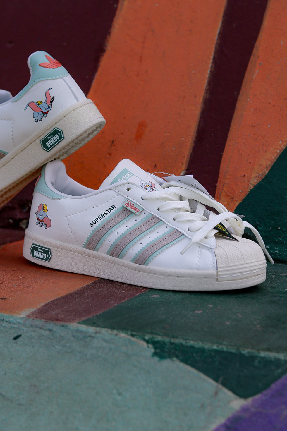 Inspiradas en el entrañable personaje de Disney, estas Adidas Superstar Dumbo combinan el icónico diseño de puntera de concha con detalles únicos de Dumbo. Con toques de color y gráficos adorables, estas zapatillas ofrecen comodidad clásica y un estilo divertido, perfecto para fans de todas las edades. ¡Un par especial que destaca en cualquier colección!
